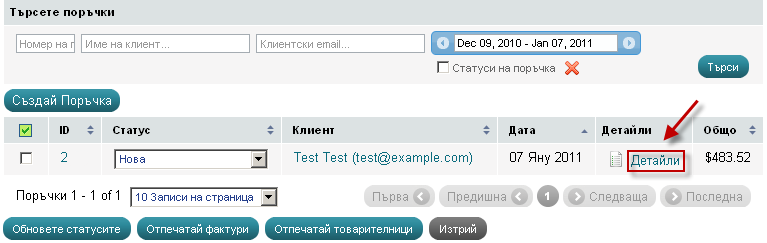 - Ще се отвори списък с поръчките в магазина Ви.