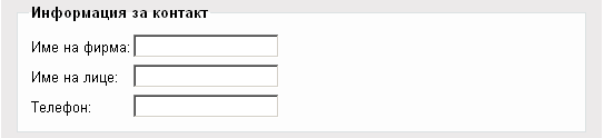 - В раздела Информация за контакт въведете - Име на фирма, Име на лице и Телефон.