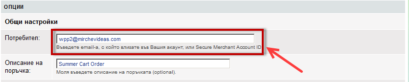 4. За потребител въведете e-mail от регистрацията Ви в PayPal.