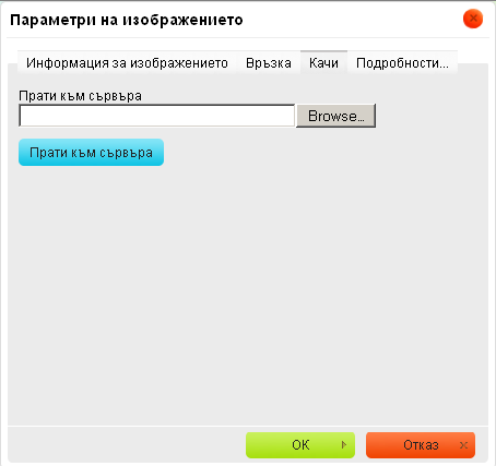 - Ще се покаже нов прозорец, от него изберете таб - Качи. Изберете логото от компютъра Ви и натиснете бутона - Прати към сървъра.