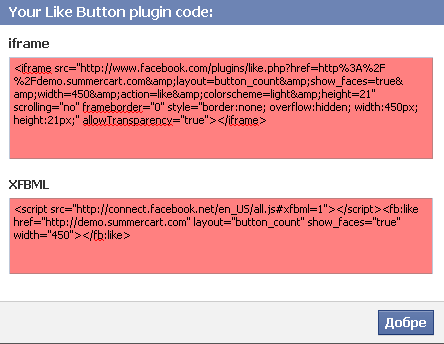 - За да добавим Facebook бутона в магазина Ви е да вземем кода му. Това може да стане на адрес - http://developers.facebook.com/docs/reference/plugins/like