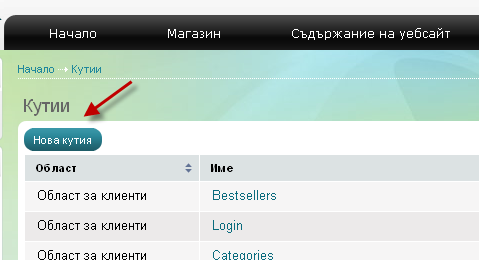- Ще видите списък с всички кутии в магазина. Натиснете на бутона - Нова кутия.