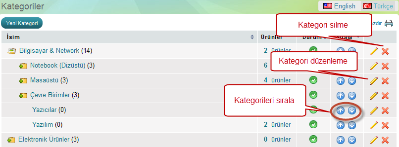 Öneri: Kategorileri sıralama butonları ile sıralayabilirsiniz, böylece daha önemli kategorileri sıralayabilirsiniz.