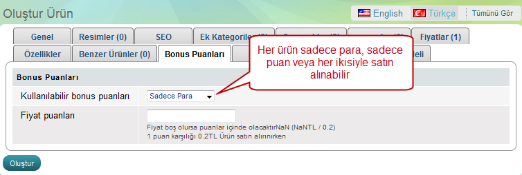 Öneri: Sadece bonus pualnar ile satın alınabilen ürünler oluşturun.