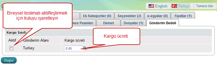 Öneri: Bü özellik satığınız ürünün kargo fiyatının tam olarak ne kadar olduğunu bildiğiniz durumlarda çok yararlıdır.