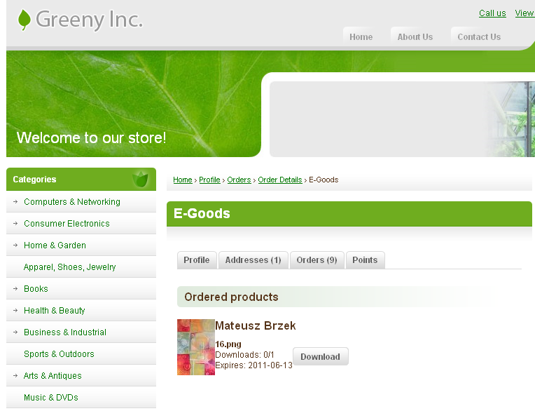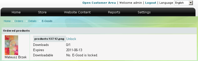 In the Store Front customers can download the e-goods they bought only after Store Administrator unlocks them. As a customer one will need to: