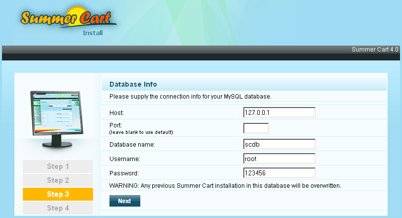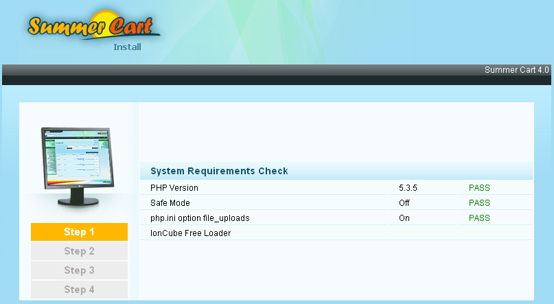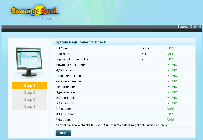 Ioncube и cUrl са успешно инсталирани. Можем да се върнем към инсталацията на Summer Cart на адрес - localhost/sc/ Ако сте инсталирали всичко правилно, ще видите следния екран: