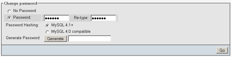- На следващия екран намерете Change password и въведете парола. Ние въведохме парола - 123456 Натиснете бутона Go за да запазите промените.