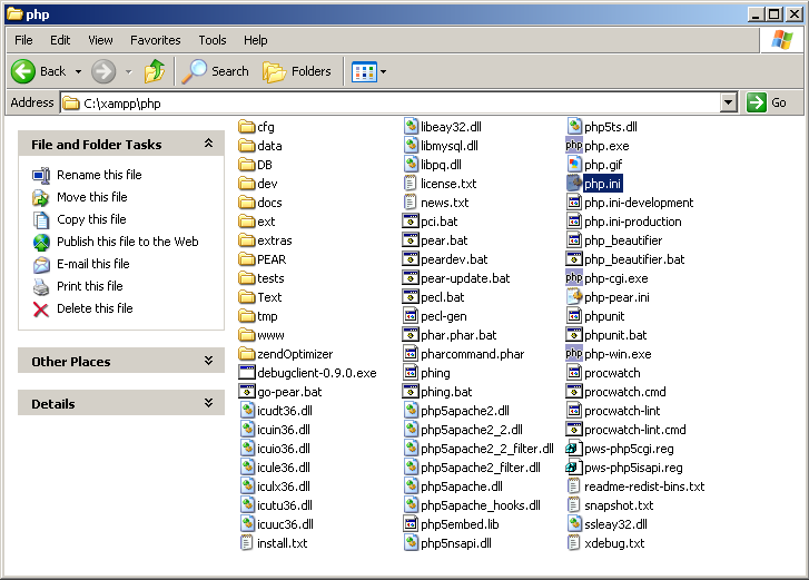 - От своя страна php.ini файла се намира в папка - C:\xampp\php