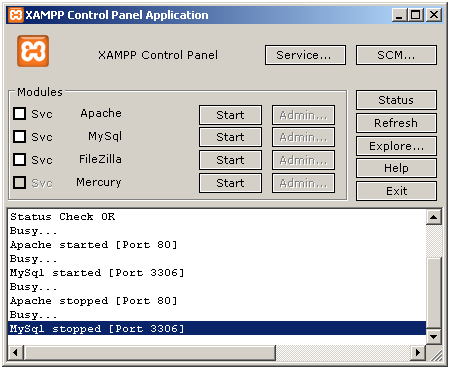 XAMPP сървъра. За да го направите натиснете Stop бутона на Apache и