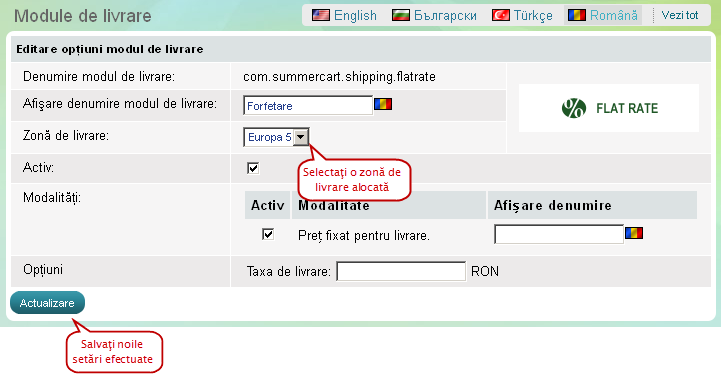 Mergeţi la meniul Setări , la 'Module' click pe link-ul Expediere. Se va deschide pagina pagina 'Mod...