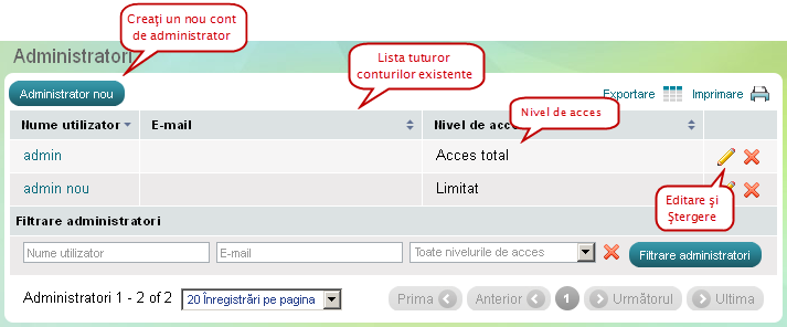 Cum folosiţi pagina Administratori