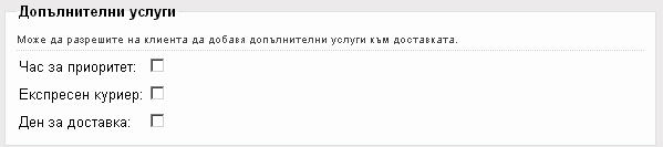 Експресен куриер: Предоставяне на възможност на клиента да посочи допълнителна услуга Експресен градски куриер.