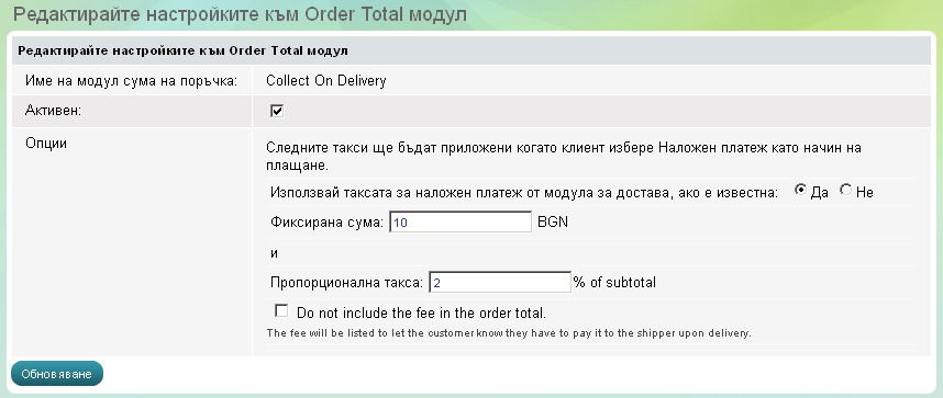 Изберете Да срещу Използвай таксата за наложен платеж от модула за доставка, ако е известна