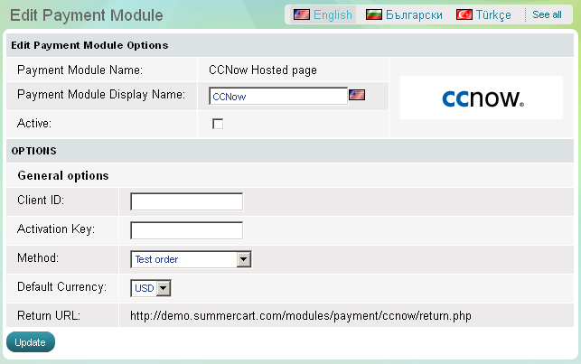 Summer Cart store owner is required to enter his or her Client ID provided by CCNow |