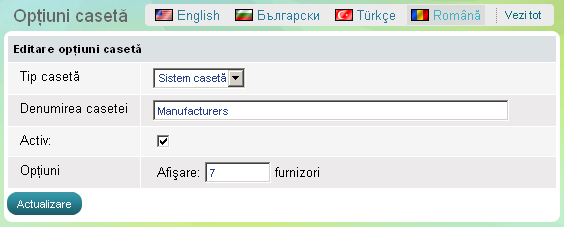 - să fie activă, ceea ce înseamnă că este vizibilă în pagina web sau, din contră - inactivă, caz în care întreaga secţiune va dispărea pentru vizitatori.