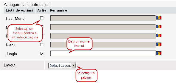 În câmpul 'Conţinut' puteţi adăuga link-uri direct prin interoducerea codului HTML sau prin intermediul editorului XHTML WYSIWYG. |