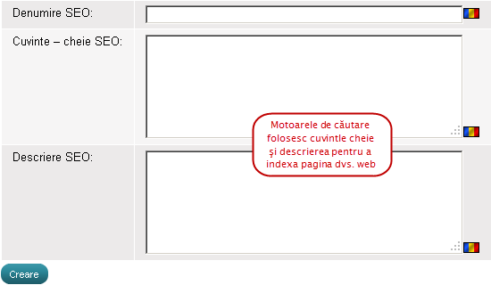 În câmpul 'Conţinut' puteţi adăuga text formatat XHTML. |