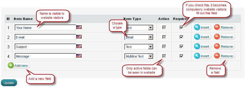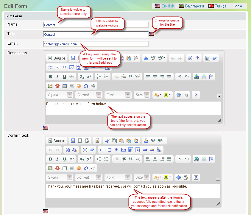 - Puteţi edita câmpurile care alcătuiesc formularul.