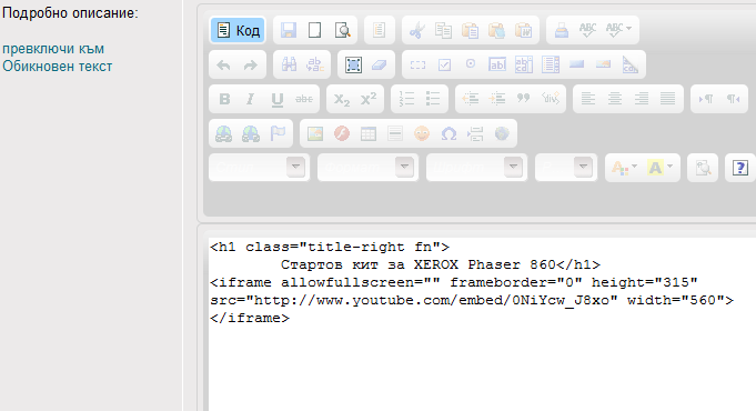 Ще Ви покажем как в няколко лесни стъпки можете да качите видео клип от youtubе, vbox или metacafe.com e в описанието на продукт. (При почти всички сайтове за видео споделяне принципът е почти идентичен).