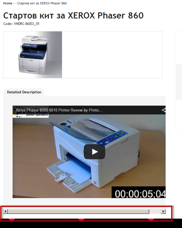 Тук виждаме нежелан хоризонтален скролер, понеже клипчето е по-широко от колоната за продуктовото описание, поради конкретните настройки на визията на този Summer Cart магазин. Използвали сме първата опция от падащото меню на Embed в Youtube. За да отстраним този проблем, намалихме width