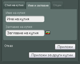 Заглавие на кутия - заглавието се вижда в клиентската част на магазина. Ако оставите това поле празно, кутията няма да има заглавна част.