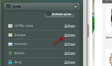 - Отворете подредбата в която искате да включите банера. От раздел Кутии добавете банер кутия в подредбата