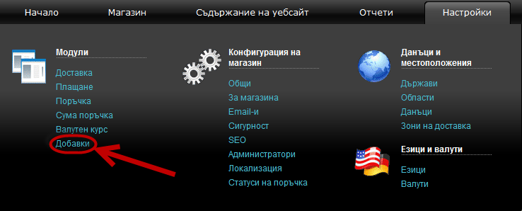 За достъпите Вашият продуктов feed да влезете в "Настройки" > "Добавки".